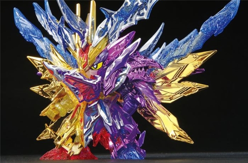 The Ultimate Holy Dragon of the Equation of Light is a form formed by the fusion of the Holy Dragon of Attack Free Light and the Mutant Dragon of Infinite Justice in order to save the world of knights. It is not affected by everything in the world and is a dragon knight that transcends the legend of the world of knights. The overall shape, whether it is a left-right half-fit form or the purple and gold color scheme, pays homage to the character " Ultimate Formula " who appeared in the past series "SD Commander Senki III SUPER G ARMS".