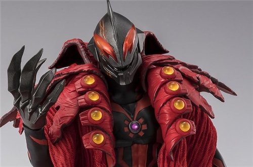 The "SHFiguarts Caesar Belial" figure was supervised by Tsuburaya Productions' LSS (Leadership Specialist) styling department. Standing at 15cm tall, it faithfully recreates Belial's appearance from the series, depicting his extremely ferocious head and massive claws. The figure is painted to reproduce the metallic texture and scars on his head. The enormous "cloak," a symbol of the Galactic Empire's emperor, is constructed from plastic parts around the collar and three hanging fabric pieces. The fabric not only replicates the characteristic wrinkles and irregular serrated edges but also allows for adjustments using hidden metal wires, enabling users to strike cool poses in conjunction with the figure's movements.