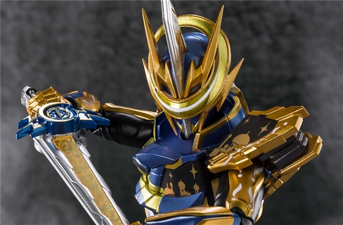 A new appearance of Kamen Rider Espada that transforms using Moonlight Thunder Sword Yellow Thunder and Arabina Night Wonder Ride Book. The gold color, which was the image color, has become a deeper shade, and the design matches the dark blue color like the night sky. In addition to 3 types of replacement wrist left and right, the moonlight thunder sword yellow thunder comes with 2 types, one is in the state of the weapon on hand and the other is in the state of being stored in the sacred sword saw driver.