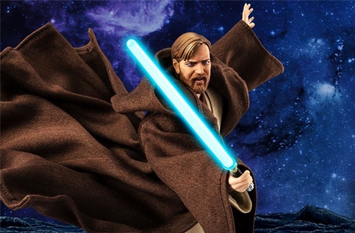 Obi-Wan Kenobi reappears wearing the cloak that was so memorable in Star Wars Episode III: Revenge of the Sith. The head is a new design, giving it a more realistic appearance. The coloring has also been changed.