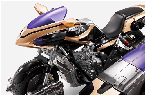 The "Photon Generator" engine portion has also been reproduced down to the finest details while also incorporating the motorcycle's transformation mechanisms, and without altering the appearance. The slim shape of the pipes that connect the motorcycle body and the sidecar are also similar to what is seen on the show. Supporting parts to enhance the stability of the sidecar portion are included as well.
