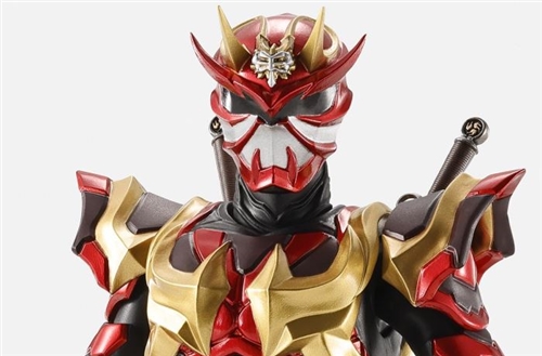 "Armored Hibiki" is a transformed form using the Sonic Expansion Sword and the Armored Sonic Blade. This movable figure is sculpted from the skeleton through the real bone carving technique of sculpting outward from the muscles to the clothing bit by bit. The iconic streamlined armor shape of this Hibiki's final form is created, and it is painted with pearlescent paint to give a shiny appearance of gold, red and black. Accessories include replacement hands and weapons "Sound Rod·Fire" and "Sound Amplifier Sword·Armored Sound Blade", allowing you to reproduce the cool dynamics of using special moves such as Sound Strike and Demon Kakusho!