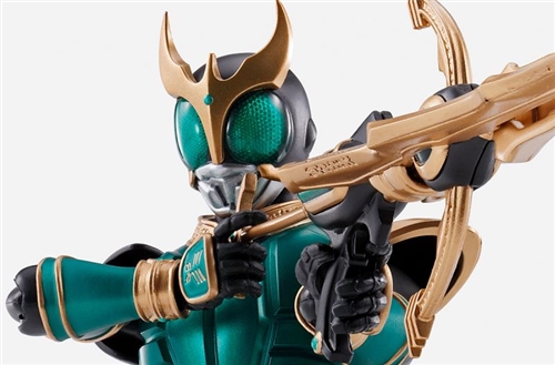 "Green Gold Kuuga", also known as "Kamen Rider Kuuga Rising Pegasus", has appeared in the true bone carving method series! Represented with new parts such as the "Rising Pegasus Bowgun", which has been strengthened with rising power and has an added spearhead. The attack pose of "Rising Pegasus", which has the power of continuous fire and long fire, can also be reproduced.