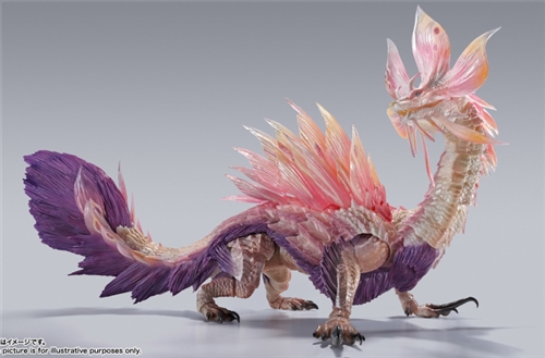 " SHMonsterArts Bubble Fox Dragon " has a large size of about 31 cm in total length. The shape is delicate and reproduces the slender and gorgeous figure in the game. The abdomen and tail are depicted with thick purple body hair, and the head and back are fins like cherry blossoms. The transparent parts are painted with gradation to reproduce brilliant colors, and the entire scales are also painted with pearlescent paint, which is quite beautiful.