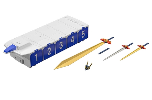 Three-dimensional drill limited express Kaiser carrier from "Brave Express Might Gaine"! The Kaiser carrier can store Kaiser 1 to 5. Reproduce the Drill Limited Express by combining it with the separately sold "SMP [SHOKUGAN MODELING PROJECT] Brave Express Might Gaine 2". In addition, a newly-sculpted head for Might Gaine that can be used in the separately sold "SMP [SHOKUGAN MODELING PROJECT] Brave Express Might Gaine (3 pieces)", a driving wheel sword (silver blade), and a driving wheel sword (gold blade) for the double driving wheel sword are included. . In addition, a huge moving wheel sword with a perspective that can reproduce the special move is also included!