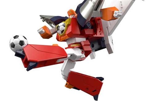 "SMP Drill Boy" is made of multi-color molded parts and stickers. When completed, the total height is about 10 cm. It can be transformed into three forms: Drill Tank, Drill Jet, and Drill Boy without replacing parts. The outer parts of Drill Boy's leg can be removed After that, you can get close to the human form in the play. The accessories include the signature "football", which can be fixed above the sole of the foot to reproduce the posture of dribbling and shooting.