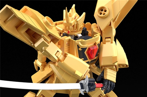 After the fusion is completed, the total height of Golden Delan is about 15 cm. Through the pull-out shoulder joints and multi-axis movable lower arm design, he can hold the "Super Dragon Fang Sword" with both hands and perform the special move of cutting in two with one blow. The two gun barrels on the legs can also be raised.