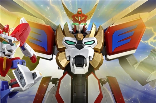 "King Exkaiser" has been released in the Soul of Chogokin series. The two frames allow for a variety of different actions: the Form Up Frame, which stores Exkaiser from the front, and the Action Frame, which can be stored separately to greatly expand its range of motion. Using the Form Up Frame, it is possible to take on the forms of King Loader and King Exkaiser while maintaining the same combination mechanism. Additionally, using the Action Frame expands the range of motion in the shoulders, waist, and hip joints, allowing for a variety of action poses from the series to be recreated.