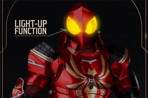 The DAH (Dynamic 8action Heroes) series is back with the launch of an exciting cross-over from the pantheons of ancient times. Featuring a 1:9 scale DAH body, classic Spider-Man is now fused with the body of a noble Medieval Knight! The one-of-a-kind design incorporates multi-layered, dazzling red and gold armor featuring elements such as Spider-Man's classic red and his spider logo printed in gold on the chest plate. Included are accessories such as detachable spider claws, which can be assembled into a double, or single-edged sword. The head sculpt includes LED-lights in the eyes, and beneath the armor, the figure is equipped with red chain mail for ultimate protection. The Spiderman rope launcher and an energy ball are included in the set. Standing at 20cm in height, with around 18 points of articulation. Beneath the fine armor, the figure is equipped with red chain mail for the ultimate in protection. A sturdy yet immensely flexible design, fit for any Medieval, Web-slinging hero!