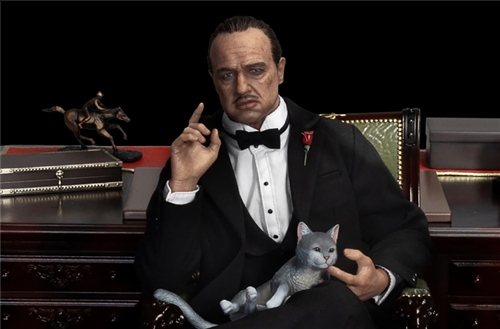 Beast Kingdom’s Master Craft series presents Vito Corleone from the legendary film The Godfather. This collectible captures Marlon Brando’s iconic portrayal with exquisite 3D sculpting and hand-painted detail—black tuxedo, red rose, and the cat in his arms.
