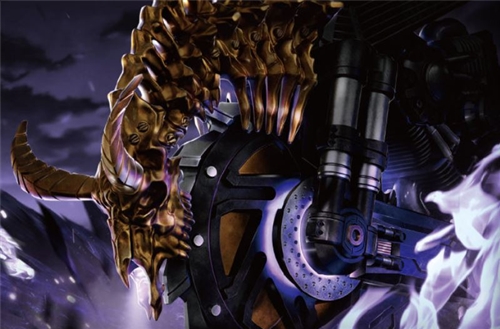 However, this product isn't the original SKL-RR, but rather an original weapon redesigned from its image, "God of Thunder." The model is a massive 29.7 cm in length, its overall shape blending the elements of an electric guitar and a battle axe, featuring a guitar neck handle, a curved blade, and a massive, tooth-like blade. Details retain the "SKL-RR" design, including a golden skull head, and the motorcycle-mode wheels, suspension system, and exhaust pipes.