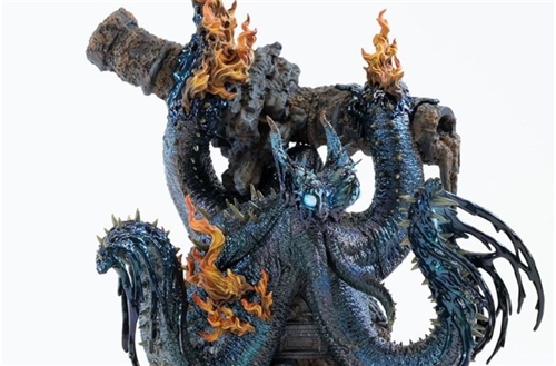 The "CFB Creator's Model Hellfire Slug" is made to resemble a scene of a fish clinging to rocks and pipes, with a total height of about 28 cm. The model meticulously depicts the terrifying head shape with its eyes emitting a blue glow, the rough skin texture and flames on its soft body, the countless thorns on its tentacles and the dripping tar. It also uses rich colors to show the thin film interference phenomenon reflected after the body is covered with an oil film.