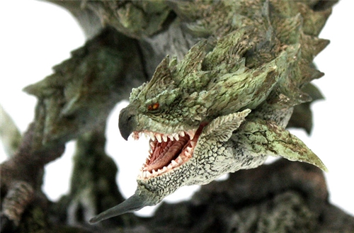 The Rathian is sculpted grasping the earth with its sharp claws and spreading its wings wide, ready to attack its prey.