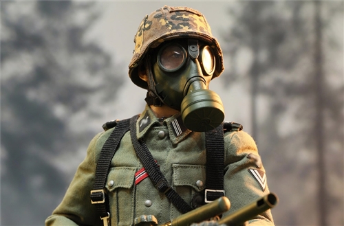 This time, DID brings you a 1/6 WWII German Guards Flametrooper-Jorg, with a realistic head carving, scars on his face, and a closed mouth. An arrogant expression and a serious and cautious look are self-evident.