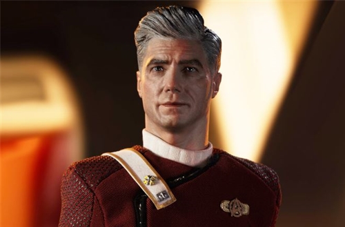 This figure represents a definitive artistic achievement, featuring an all-new, hyper-accurate sculpt of the older Admiral Pike that captures the authentic likeness of Anson Mount.