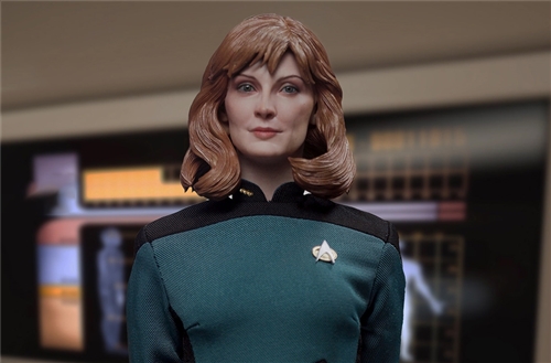 This EXO-6 1:6-scale action figure re-creates this iconic character in exquisite 1:6 detail. Standing approximately 11 inches tall, every element, from her 24th century medical coat to her medical tricorder, is authentically reproduced. The original portrait sculpt of Gates McFadden as Beverly Crusher has an authentic, hand-painted likeness.