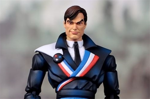 Reuben Flagg, AKA American Flagg, was born in 2000 at Hammarskjold Center, Mars. He was a stand-up comic and popular television star of the show Mark Thrust, Sexus Ranger. After he was made obsolete by CGI technology, he joined the Plexus Rangers and emigrated to Earth, being stationed in the Chicago Plexmall. Flagg is Jewish, and his parents' “undesirably bohemian” attitudes have given him an idealistic view of the United States that runs contrary to the Plex. He has a desire to set things right again, and through inheriting Q-USA, begins to set on that path. PRODUCT