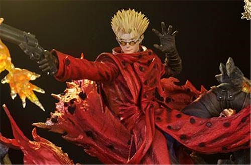 Figurama has crafted a dynamic 1:4 scale figure that depicts planet unsmoke's most feared outlaw dodging a barrage of bullets while directing his own deathly arsenal from the end of a modified .45 Long Colt toward the bad guys. Reaching 55 centimeters (over 21.5 inches) in height, this exquisite statue is concisely crafted from high-density polystone and some PU material for added details. Our talented sculptors produce the cleanest cuts you'll find in the figure collectibles industry, masterfully capturing Vash's signature crimson duster coat billowing in the breeze of the bullets.