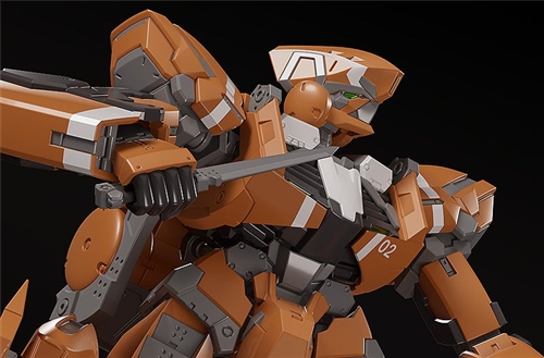 The Earth Federation Forces' Cataphract Sleipnir has been brought to MODEROID under the supervision of mechanical designer I-IV. It comes with a wide variety of weapons, including a submachine gun, long rifle, 203mm grenade rifle, handgun, and knife. The submachine gun comes with a detachable grenade launcher, and the magazine can be removed, while the long rifle's bipod can be deployed.