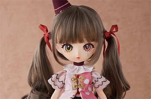 Introducing a Near Harmonia doll themed on the nostalgia-tinged world of "Sentimental Circus." The dress is made from an original textile and sports a design featuring Shappo and the other stuffed animals from the secret circus troupe. Heterochromatic eyes and circus-girl inspired makeup give the doll a unique look. And evoking the feel of Sentimental Circus is an original outfit, which includes a dress and swallow-tail vest. The doll also comes decked out with a variety of other accessories, including a mini hat, collar, and strapped shoes. Accept this invitation to the world of Sentimental Circus by welcoming the doll into your collection!