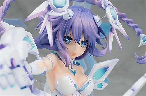 From the new OVA "Hyperdimension Neptunia: Nep's Summer Vacation" comes a 1/7th scale figure of Purple Heart's new design featuring the Processor Unit Lilac COOL. The figure is based on an illustration by the original character designer Tsunako. Purple Heart is equipped with her great sword and Purple Sister's M.P.B.L.! Be sure to add her to your collection!