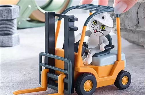 The Workplace Cat is well known for its cry of "Yoshi!" This item is a three-dimensional representation of a Workplace Cat riding a forklift, based on an original illustration by illustrator Kumamine. It beautifully expresses the cat's unique cuteness. What's more, it comes with a gimmick that makes it run when you pull it back and let go, so it's great for both display and play!