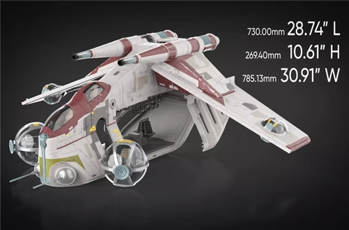 This Infantry Low-Altitude Assault Transport craft, a collaboration between the HasLab team and Lucasfilm, is an upgraded version of the previously released model. Measuring 73cm long, 78.5cm wide, and 26.9cm high, it perfectly replicates the film's proportions. Even standing upright, a 3.75-inch clone trooper can fit inside without hitting the ceiling! The team meticulously recreated the original design, meticulously recreating every detail, including the piping, panels, and mottled casing. A variety of replacement parts are included, allowing you to recreate the Infantry Low-Altitude Assault Transport craft from different factions!