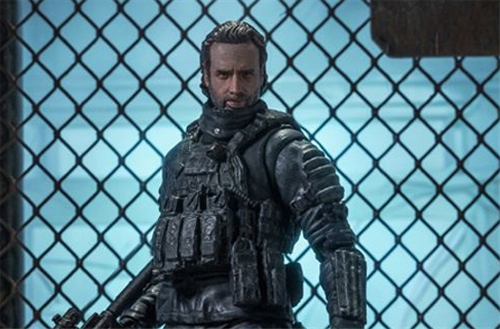 . He is dressed in tactical equipment, full of oppression. In terms of weapon accessories, Rick is equipped with an automatic rifle, a pistol and an axe. The leg holster can store the pistol and axe, providing