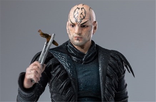 mighty, with mysterious tattoos on his head and wearing a black leather jacket. The details of the costumes, the Romulan polearm that looks like a trident, the hand crossbow and other accessories are all meticulously detailed, and are