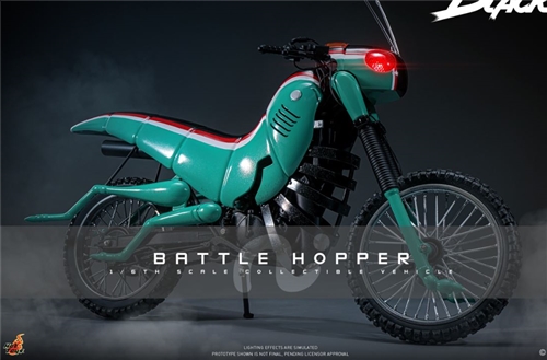 Hot Toys presents the 1:6 scale collectible Battle Hopper from Kamen Rider Black. Based on the appearance in the drama, it cleverly combines the biological characteristics of the locust with the design elements of off-road motorcycles to accurately restore its unique structure as a mechanical life form. The body size is about 36cm long, 14cm wide and 21cm high. It can be ridden with the 1:6 scale collectible figures of Kamen Rider Black or Shadow Moon in the same series to reproduce the famous scene of the ultimate showdown in the drama. The vehicle adopts advanced painting technology and precision carving technology to delicately present a full set of mechanical details including the seat, engine, exhaust pipe and side frame; the specially designed aged tire texture faithfully reproduces the wear marks during the fierce battle in the mud of the mine, bringing players an immersive restoration experience. In addition, the headlights are equipped with a red LED light-up function, and the internal spring structure is designed to simulate the effect of the shock absorber. With the freely rotating front and rear wheels, the dynamic realism is brought to a new level. When Kamen Rider Black rides on the battle locust at full speed, the classic "Wheelie" attack action is instantly and vividly reproduced - the most classic silhouette of the Showa Rider is born!