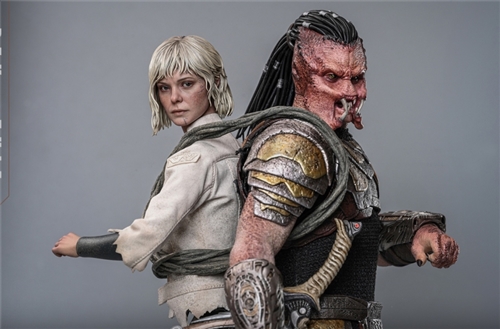 (November 14, 2025) A brand new chapter in the Predator series is coming! Hot Toys ( www.hottoys.com.hk ) presents a 1:6 scale collectible set of Dek and Shea from *Predator: Kill Zone*, as well as a 1:6 scale Dek collectible figure set. The set professionally recreates the exiled Predator Dek's wilderness appearance and hunting gear, while also featuring a half-body portrait of Shea, the android played by Elle Fanning, from the film. Two sets of interchangeable eyes allow for switching between the signature mechanical white eyes of the Weyland Yutani Corporation, and a magnetic design allows for combination with Dek, recreating their desperate alliance!