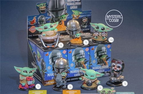 Each random package box includes an approximately 7 – 10.5cm tall The Mandalorian and Grogu Cosbi Collectible and a special collection card. It comes sealed in a foil bag and is blind boxed to preserve the rarity and collectability of the series. Available in selected markets only.