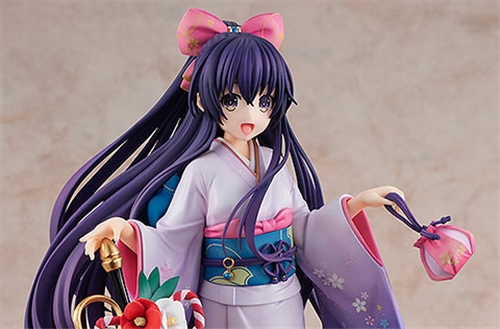 From KADOKAWA's Fantasia Bunko Editorial Department's light novel series "Date A Live" comes a 1/7th scale figure of heroine Tohka Yatogami! She's been recreated wearing a beautiful haregi based on her appearance on the cover of Dragon Magazine's March 2019 issue, as illustrated by Tsunako. Tohka's kimono features a gradated purple base color and a gorgeous design. Her sword, Sandalphon, has been decorated with New Year's decorations. Tohka's energetic, festive smile has also been recreated in detail.