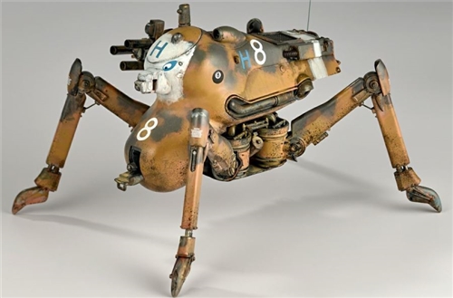 Two early models of the mercenary army's large quadrupedal mecha, the heavily armored combat suit "Gladiator," are now available as 1/35 scale plastic model kits. The kit allows you to create the early production "G1" type and the pre-production "G2" type. In addition to the railgun for the "G2" type, a triple rocket tube is newly included as an armament for the "G1" type. A SAFS type hatch is included. The side covers that cover the muffler are reproduced in their detached state. In addition, Eddie Amsel is included as a newly sculpted figure that expands the world of the 1/35 scale Maschinen Krieger! One decal with new markings is also included.