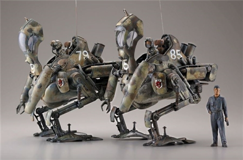 From "Maschinen Krieger (Ma.K.)", the Strahl Army's multipurpose large armored combat suit "Kangur" is now available as a 1/35 scale plastic model kit. The Kangool is a machine developed for the recovery and supply missions of friendly aircraft, with the legs and engine section of the Krete attached to the fuselage based on the PKA Ausf G Gustav. The machine used by the engineer corps is equipped with an excimer laser. The main body and pilot are made into a kit based on the prototype by Mr. Saito Heer of FUJIYAMA ARTS BROTHERS, who has worked on numerous "Ma.K." works. Two pilots with selectable heads are included.