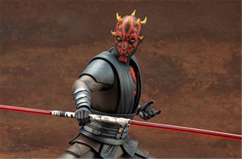 Expertly sculpted using actual reference materials from the Lucasfilm archives, ARTFX Darth Maul stands ready for combat at an impressive 1/7 scale with his double Lightsaber drawn. Twin removable energy blades allow you to display Maul right before he ignites his hilt. And the distinctive crown of horns atop his head and the red tattoo markings found on his face and chest denote his Zabrak heritage.