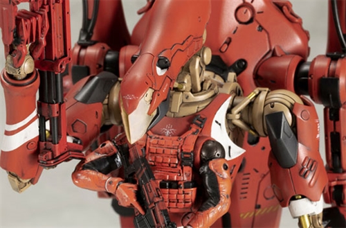 -This model is equipped with a lightweight assault rifle, a heavy-duty machine gun, a shield unit, chiral particle cannons (left and right), a close combat arm (blade), a missile launcher, a power arm, and a gas pod.