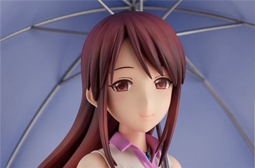 The first figure that the company presents to us within this new series is a wonderful figure dedicated to Miyu Mifune, a character available in THE iDOLM @ STER: Cinderella Girls, represented with the outfit with which we can see her in the illustration of the card [ Teardrop]. A figure that, as you can see, has been sculpted without leaving even the smallest detail so that the most fans of Miyu Mifune can add to your collection a most charming figure of your favorite character. Look at the flirty pose with which Miyu has been represented walking in the rain with some beautiful hydrangeas, how perfectly recreated her pink dress and umbrella and the soft sensation of movement that her hair transmits to us.