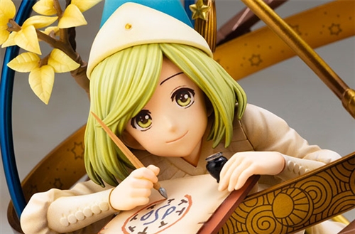 From the sculpt to the painting, this figure has been made to seem as though Kamome Shirahama's illustration has come to life. Multiple variations of gold paint have been used to create a realistic balance of colors and depth. The softness of the Fudemushi, the wrinkles in the clothing, the metallic coloration of the armillary sphere and the countless details that can be seen in this figure are all aspects that fans can enjoy in this work of art.