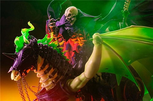 Like the Luminous Skeleton King, this work boldly uses mixed media such as fabric, metal, and plastic. The armor accessories with spikes and chains on the body are also detachable. The overall shape echoes the Luminous Skeleton King that was launched at the same time. The Skeleton King is sitting astride a luminous skeleton horse with his wings spread and galloping. It’s so cool!