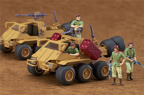 From the anime series "Fang of the Sun Dougram" comes the sixth in the COMBAT ARMORS MAX series and the first in the set to feature combat vehicles instead of mecha. This is a set of two Native Dancer combat buggies together with character miniatures to display around the Combat Armor models and bring out the atmosphere of the series even more!