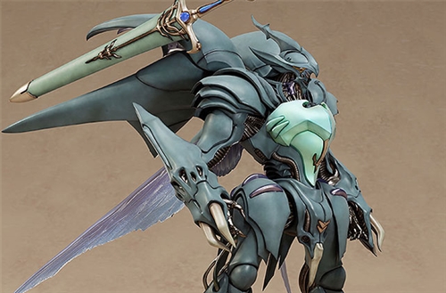 The second installment in the PLAMAX Aura Battler series is a plastic model of the Bellvine, expertly designed by renowned artist Busujima. The model features fine details, sharp edges, colored surfaces, a noble standing pose, and parts that are easy to assemble and paint?all while preserving the appeal of the original design. The model kit comes in three colors: green gray, ivory (claws, etc.) and translucent (wings, chest cover, etc.). The included Aura Sword can be placed either in the model's right hand or in the sheath.
