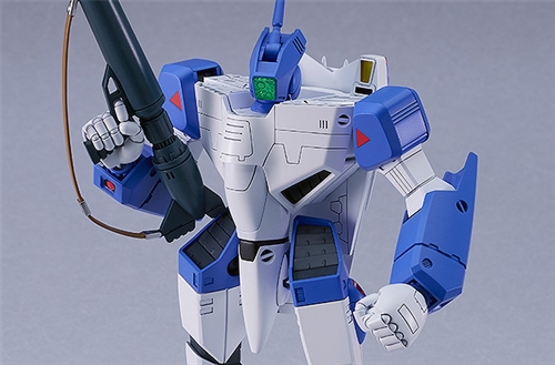 From the TV anime "Super Dimension Fortress Macross", the blue VF-1A, the first Valkyrie piloted by Maximillian Jenius, and the one that left a strong impression in the battle with Quadran Lo, piloted by an ace pilot of the Zentradi military, is now available as a kit. The powerful proportions, which are based on the design drawings and the image from the anime, are achieved by eliminating transformation and making it a battroid only. Each part is molded in five colors, and you can get a realistic finish just by assembling it and applying water transfer decals. You can also paint the details to make it look more like the one in the movie. Polycaps are used for each joint, allowing for smooth posing. Includes parts to expand the thruster cover on the side of the body, which was shown during the battle with Millia in episode 18. Water transfer decals are used to recreate various markings. A figure of "Maximillian Jenius" of the same scale is included.