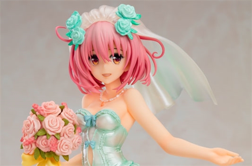 From the anime series "To Love-Ru Darkness" comes a newly refined 1/6th scale figure of the gentle-looking schemer, Momo! She has been sculpted in a rather risque bridal outfit, wearing nothing but sexy lingerie and a bridal veil!