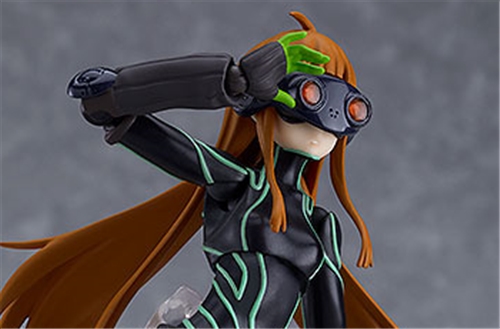 She comes with her laptop, an effect sheet to recreate her appearance when she uses a skill and an alternate front hair part for displaying her with her mask on.