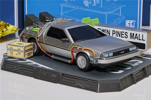 Once complete, you’ll have a detailed, high-quality replica complete with lightning-charged cables, plutonium case, and the Twin Pines Mall sign backdrop.