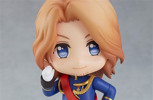 From "Hetalia World Stars" comes a Nendoroid of France, lover of art and fashion. He comes with three face plates including a standard expression, a winking expression and an expression with closed eyes that can be used in all kinds of situations! Optional parts include a rose, his buddy Pierre and alternate back head parts to display his hair tied. A special round base with a lily design is also included! Be sure to add him to your collection!