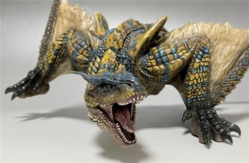 The GK model of "Hanglong" sculpted by Kanyoshi Kobo adopts a powerful size of about 23 centimeters in total length to reproduce Honglong's signature tail-flicking attack posture. It integrates the characteristics of real-life dinosaurs, reptiles and other creatures, and has scales all over the body. The shape, size and arrangement, as well as the tyrannosaurus-like head shape and dentition are all as lifelike as specimens. Compared to "Monster Hunter: World", which also uses realistic modeling, it is even more refined, presenting a handsome appearance that is different from the game. .