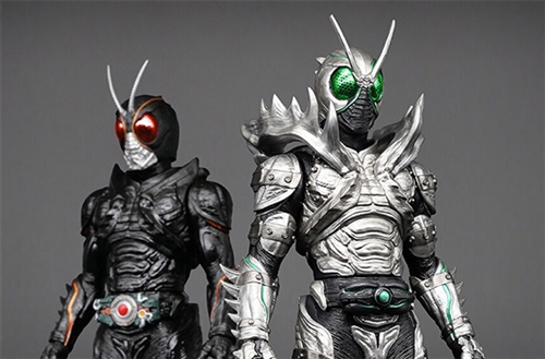 Also, in this "Confrontation Set", the luminous color of the compound eyes that changes according to the heightened emotion is adopted. "Black Sun" expresses bright red eyes that appear on a body black, and "Shadow Moon" expresses green compound eyes that appear suspiciously on a silver mask.