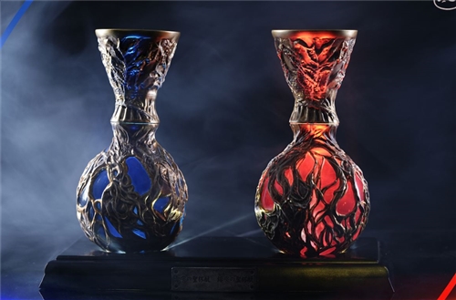 -Brand:Panda Studio-Product name:Holy Grail(Blue and Red)-ES:TBD-Scale:1:1-Size:H20.5CM W27.8CM D13CM-Release date:TBDFeature:Base with LED , two Holy Grails together , can't buy separately